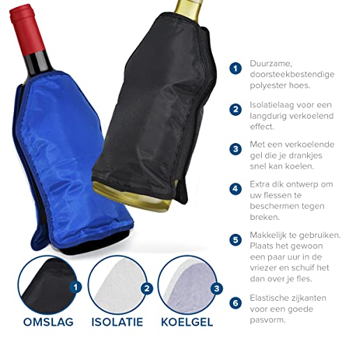 Joeji’s Kitchen Set van 2 Wijnkoeler Mouwen – Zwart & Blauw – Perfect voor het koelen van Wijn & Champagneflessen…