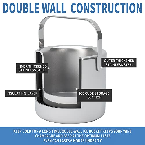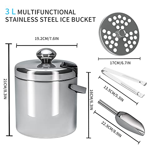 LessMo Roestvrijstalen ijsemmer, 3 liter, ijsblokjesschaal met deksel en ijstang, ijsblokjeshouder, dubbelwandige…