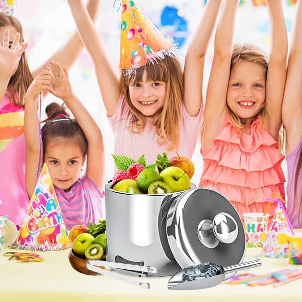 Roestvrij staal van levensmiddelenkwaliteit: de ijsblokjesschaal bestaat uit hoogwaardig roestvrij staal, dat koel en duurzaam is. Deze ijsemmer van roestvrij staal is perfect voor ijsblokjes voor het toevoegen van sappen, dranken, whisky, bier, cocktails en meer.
