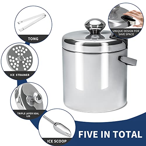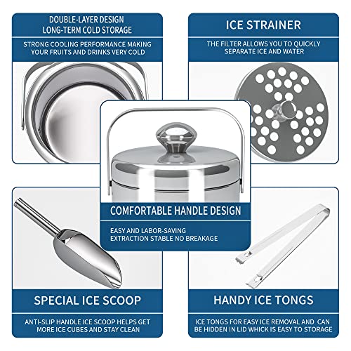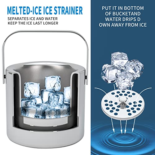 Uniek design: de ijsemmer van roestvrij staal bestaat uit ijsemmer, filter, ijstang, ijsschep en ijsemmer. Het heeft een volledig stalen handgreep voor eenvoudig transport. De ijstang is verborgen in de vullaag en neemt geen ruimte in, waardoor het gemakkelijk is om ijsblokjes vast te pakken. Het ingebouwde filter bevindt zich op de bodem van de ijsemmer om het ijswater beter af te scheiden en de ijsblokjes langer op te bergen.