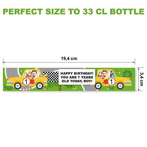 15 gepersonaliseerde etiketten voor feestjes en verjaardagen, model CARS, maat 33 cl.
