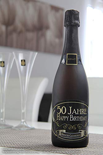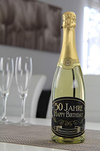Met deze sticker verander je je standaard mousserende wijn of champagnefles in een prachtig cadeau voor elke “nieuw” vijftig!