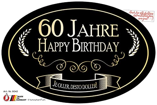 Specification: “60 jaar – Happy Birthday” sticker fleslabel etiket 60e verjaardag ovaal goud elegant
