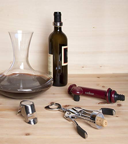 Excelsa Enoteque Vacuümpomp voor spoelbakken, rood, inclusief 2 herbruikbare deksels