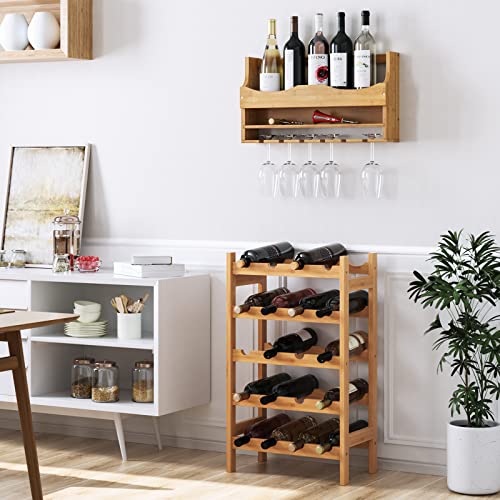 Specification: HOCSOK Wijnrek met 5 niveaus, flessenrek met 20 flessen, bamboe wijnkast voor keuken en bar, 43,5 x 24,6 x 73 cm
