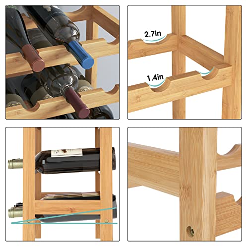 Grote capaciteit: de bamboe wijnkast heeft vijf niveaus met 4 flessen per niveau, die tot 20 flessen wijn kunnen houden, genoeg om je wijnflessen op te bergen
