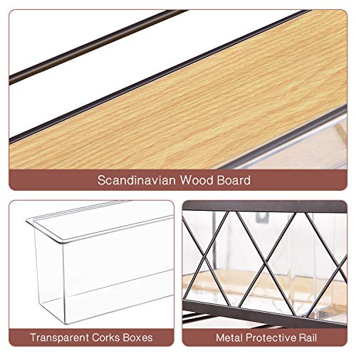 ☑【PREMIUM KWALITEIT & STURDIG】Gemaakt van hoogwaardig metaal en charmant houtontwerp, het poedercoatingoppervlak zorgt ervoor dat het wijnrek anti-roest is. De verhoogde metalen beschermrail voorkomt dat de wijnflessen vallen.