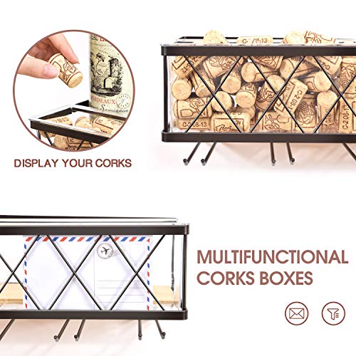 ☑【3 IN 1 ONTWERP】Deze slimme wijnhangende plank combineert creatief de functie van wijnrek, brillenhouder, kurkdozen en brievenhouder. Het kan 5 flessen, 10 glazen en 70 kurken bevatten. Het brilrek houdt de bril ondersteboven hangen om ze volledig te drogen, stofvrij en binnen handbereik te blijven.