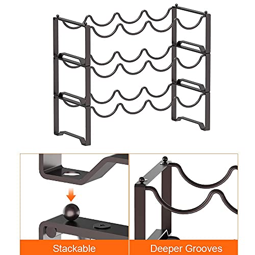 【Golfvormige planken】 Lichtboogdesign en stabiel frame voor het vastzetten van elk verbindingspunt om te voorkomen dat het wijnrek wiebelt, kantelt of valt. Het open draadontwerp zorgt ervoor dat je wijn vers blijft en elke fles gemakkelijk toegankelijk is.