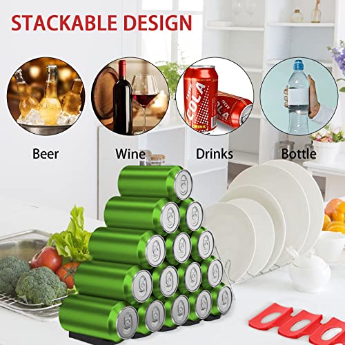 3 stuks can stacker voor koelkast, modieuze koelkast fles opslag siliconen water bier en kan fles stacker anti-slip koelkast wijnfles organisatoren opvouwbare koelkast bier fles houder herbruikbare bierfles koelkast opslag voor kast koelkast (rood zwart groen)
