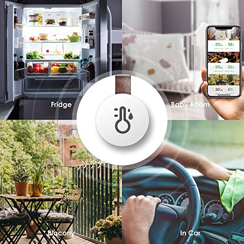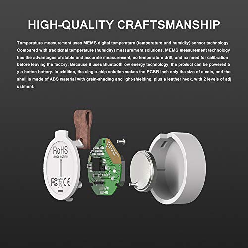 ✔ 【Sensor voor hoge nauwkeurigheid】: de geïntegreerde, bijgewerkte MEMS-sensor wordt eenmaal per seconde bijgewerkt om actuele en nauwkeurigere gegevens te leveren. De temperatuurfout kan tot ± 0,5 °C bedragen, de vochtfout is tot ± 3%. De temperatuursensor is een 5.0 Bluetooth-chip en biedt draadloze real-time bewaking op temperatuur (-20-60 °C) en luchtvochtigheid (0-100 °C).